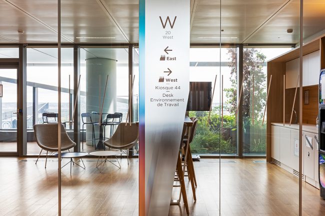 « Conçue pour devenir la vitrine des savoir-faire et de l’image de Saint Gobain, la tour de 50 000m² répartis sur 44 niveaux et 170m de hauteur, ambitionne d’apporter des solutions à un grand nombre d’enjeux actuels :